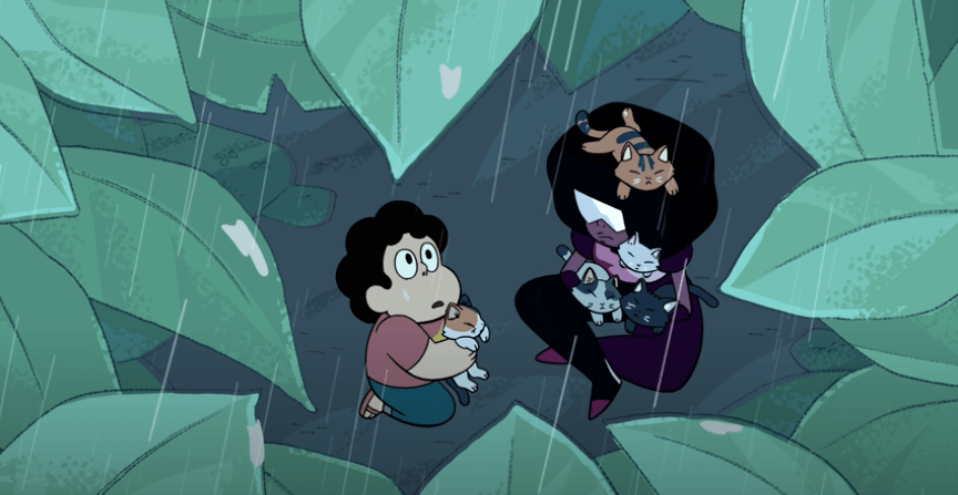 Steven: I think we’ve gotta stop being random and figure out what we can do for these kittens. Garnet, can you use your future vision? What should we do next? Garnet?