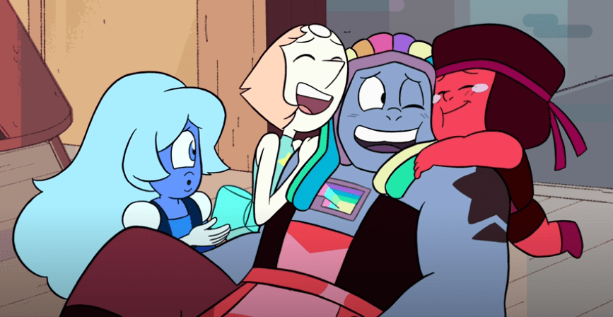 I mean, it certainly makes sense that someone who had significant disagreements with Rose would feel a lot differently about learning she’s really a Diamond. But this leads Steven into the happy occasion for his visit.