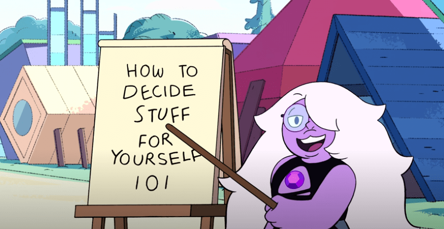 For real, tho, you have your Amethyst, she generally seems to give solid advice nowadays, so listen to her! Gone are the days when she promoted dangerous pranks on humans…