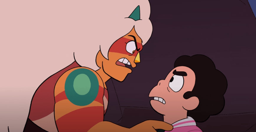 Jasper: Listen, weakling! You might have Pink Diamond’s Gem, but you are not my Diamond, and I am not going to take orders from some weak, sappy, useless piece of dirt! If you think you’re hard enough to tell me what to do, then fight me and prove it!
