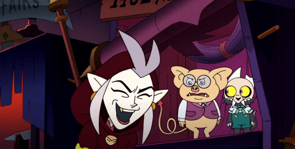 But Amity must have been intentionally provoking Luz with that one, so she’s game to show up Amity, too…until they attract the attention of some demon hunters.