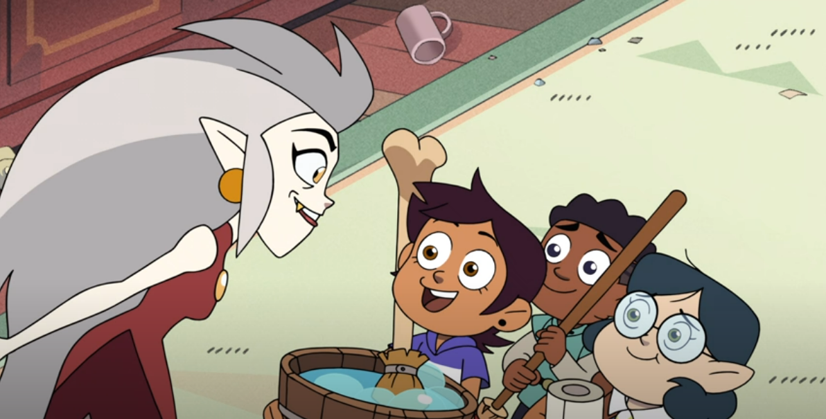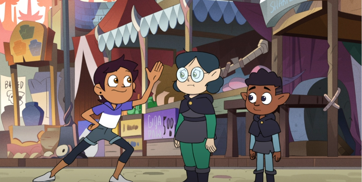 Eda gets a tip that someone at the Midnight Market might have her elixir, so she’s too concerned about that to pay much attention to Luz when she asks if she can have her friends over…or when she subsequently acts REALLY suspicious after Eda says no.