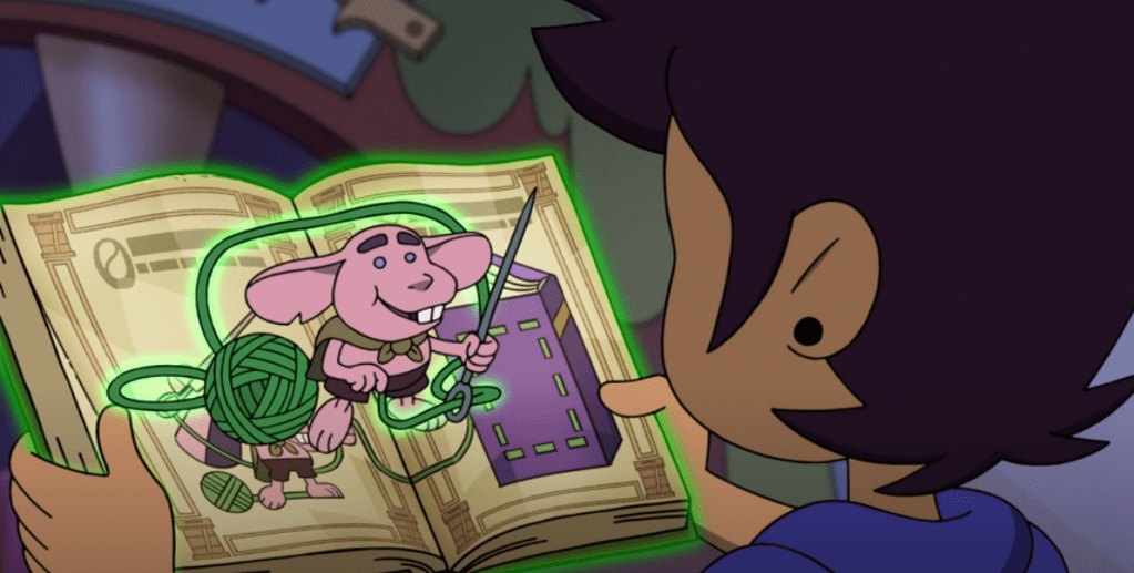 They discover that the Wailing Star event brings the books to life, and they have a lot of fun with using books about snowballs to have snowball fights and stuff. But then Luz takes a look at the book Amity was reading to the kids, evidently a childhood favorite of hers (she claims to be reading to kids for extra credit, but if she’s anything like me, she’s at least partly doing it to share a story she loves).