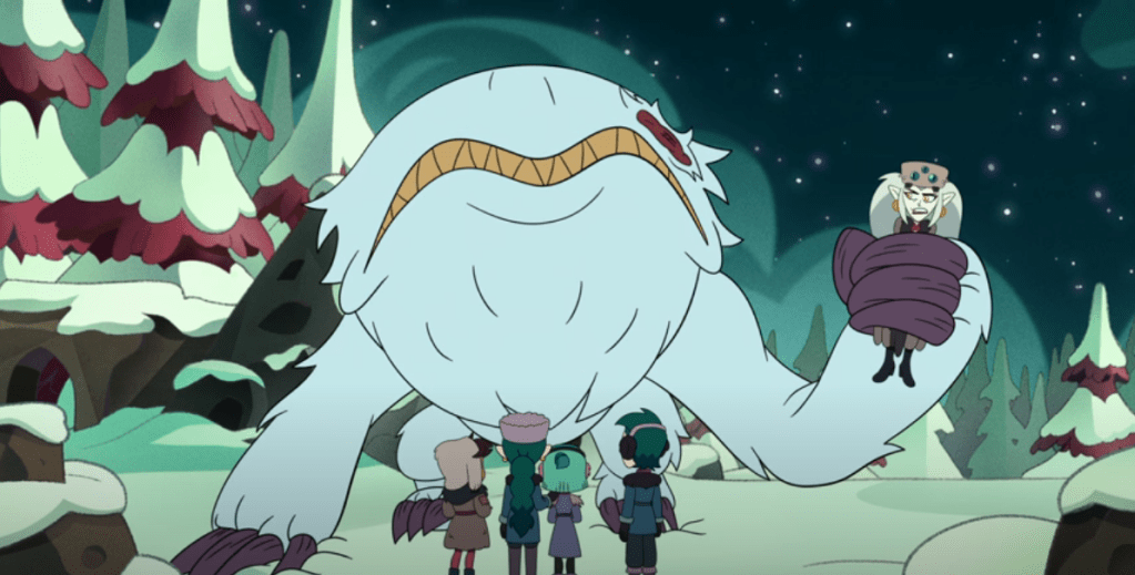 So Luz takes care of the beast using a giant ice glyph, or at least enough that Eda’s able to do a ringer and cast a sleep spell on it.
