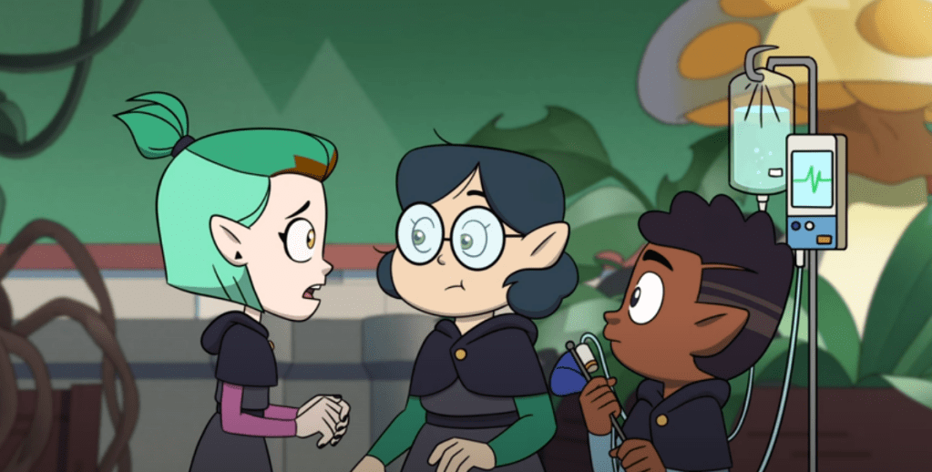 Amity manages to rally the troops, but as Gus is still slightly traumatized by the Grudgby field, Amity herself takes his place as the third player (evidently it was just training with Luz that she found so unbearable…).