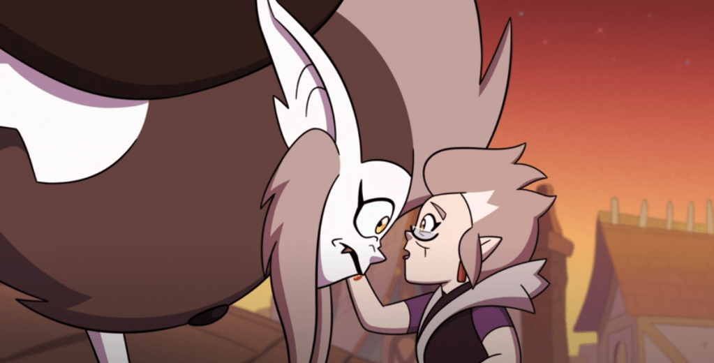 Although this episode is sort of wish-fulfillment in a similar vein as Steven Universe, it improves upon that in two ways. First, unlike with Dr. Maheswaran or even White Diamond, this episode actually takes the time to explore Gwen’s perspective before she changes her mind, and unlike them, it didn’t necessarily feel like she HAD to change her mind for the sake of the plot. Luz and King were there, and while it would’ve been a lot more difficult without Gwen’s help, it wouldn’t have been impossible. The other difference is just the fact that Eda and Lilith are adults, and hence their mother isn’t nearly as important a part of their lives as was the case with the child protagonists of SU. They’ve managed to get along without her for decades, so there was no guarantee she’d ever be reconciled with them, let alone in this episode.