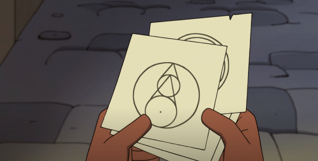 Elsewhere, Gus is faced with a giant monster with no glyphs left, so in desperation, he just makes a copy of it as an illusion…but it turns out the original was an illusion as well.