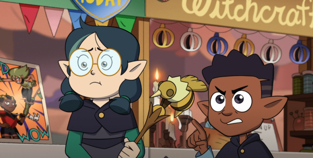 Obviously, Luz always thought the author was human, but Amity assumed she was from the demon realm, and when they compare the author photos, the one on Amity’s book depicts her with pointy ears. And thus they’re off to solve this mystery (far away from Willow and her prospective team).