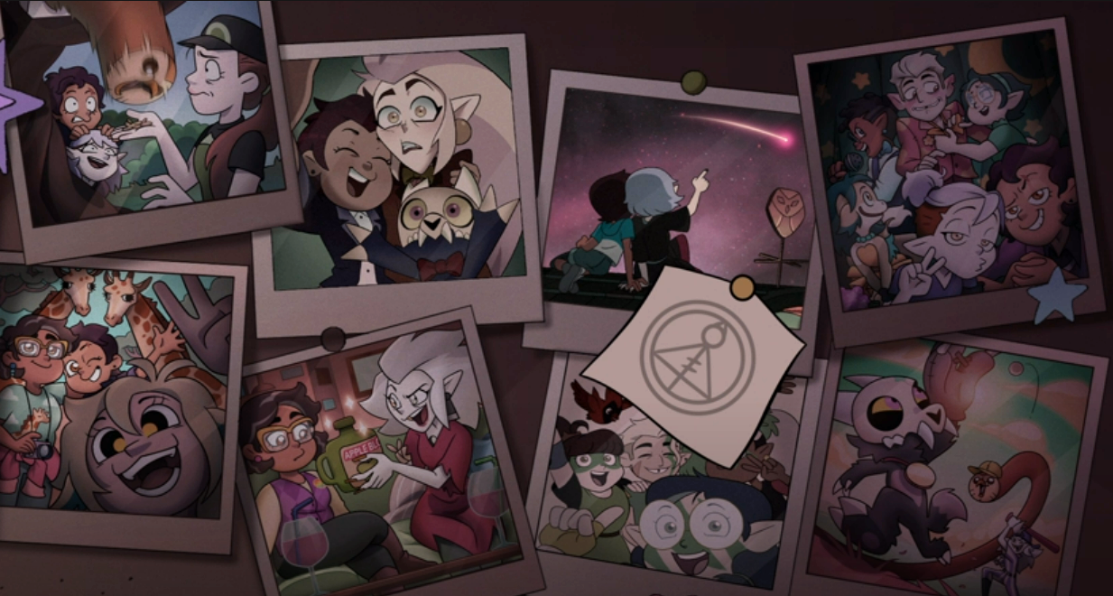 We skip a couple years to when Luz has graduated high school (evidently in the human realm). There’s evidence of frequent travel between worlds, like the Grom photo that includes both Hunter and Vi – it helps when you’re friends with a Titan!