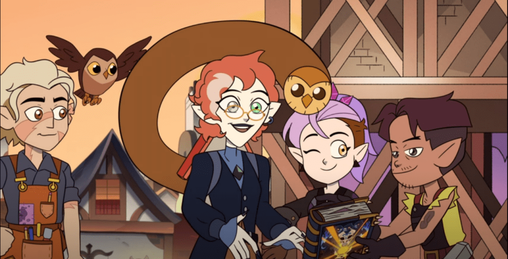 As it is, we got a great show! It mainly stands out for its queer representation, and unlike Steven Universe (which stood out mostly because of the orientation of his magical guardians), this show features a queer protagonist in a gay relationship (and unlike Legend of Korra, or She-ra for that matter, they’re able to build the relationship gradually over the course of the series). If you want a replacement for Harry Potter featuring likable characters (and queerness), this takes a lot of similar concepts and switches it up a bit. I’m planning on writing at least one more thing about this show (and Harry Potter) before the end of the year.