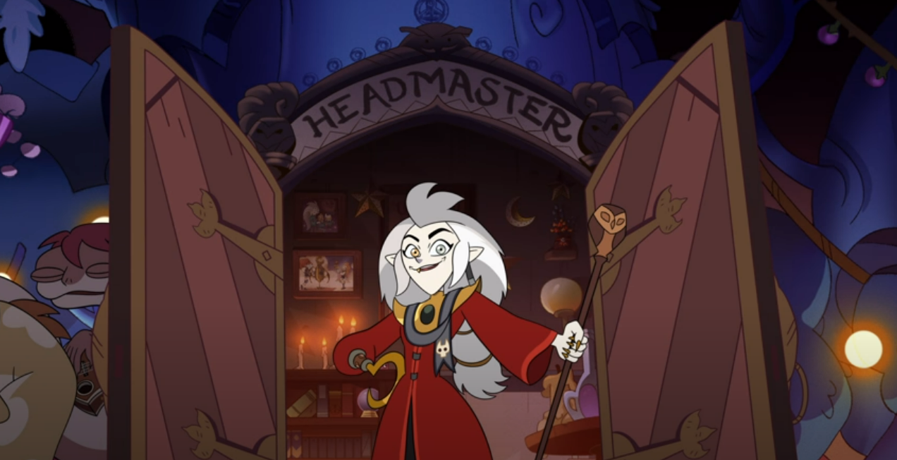 Then there’s Eda, who is rocking the hook hand and heading a more Professor X-type school (also the college Luz is heading to).