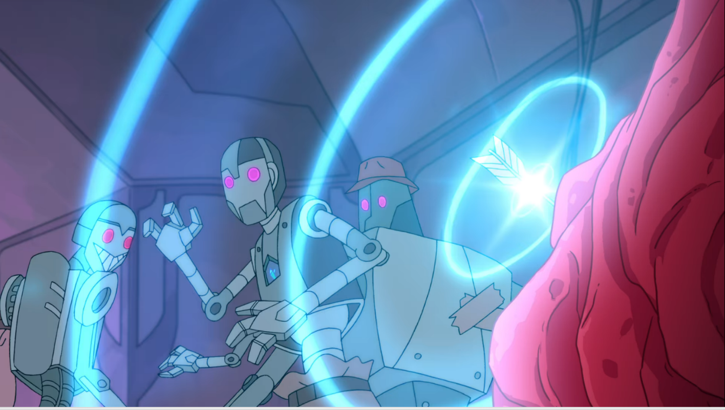 Then Bow manages to shoot a sonic arrow he’d invented at the disk, resulting in the robots destroying the disk for them! He really is the hero of the episode. Entrapta thanks them for saving her by agreeing to join the Rebellion and provide weapons for them.