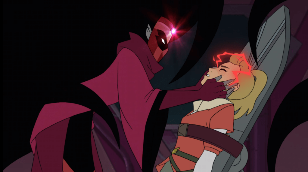 Shadow Weaver: You are correct, Adora. You shall stay willingly, because I am going to wipe your mind. You’ll have no memory of She-ra, or the time you spent with the Rebellion. Everything will be as it once was. As for the princess, once I’m done, you’ll be happy to have her as your prisoner.