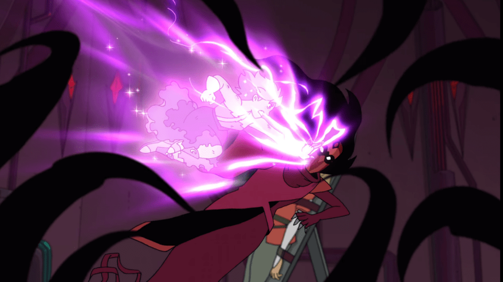 It’s a pyrrhic victory, as they retake the sword and the captives, but lose Entrapta, and also Glimmer can’t seem to use her powers anymore.