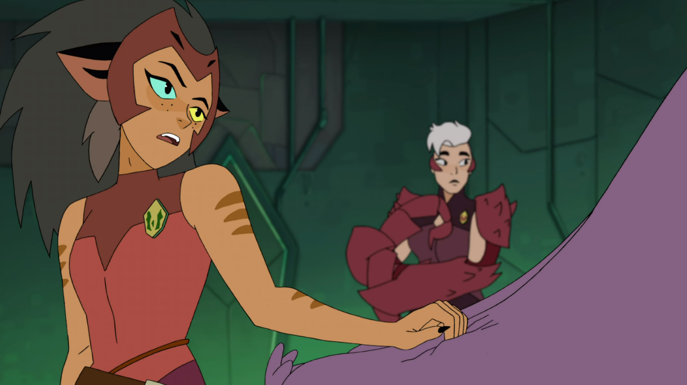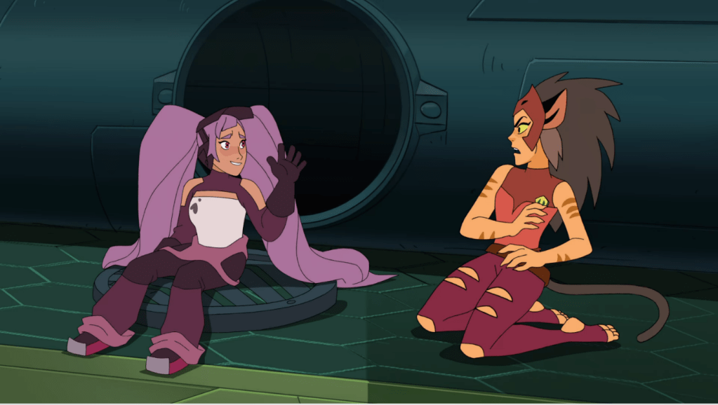 Catra seems to genuinely empathize with Entrapta’s situation, but she also senses that Entrapta’s ties to the Rebellion aren’t that strong.