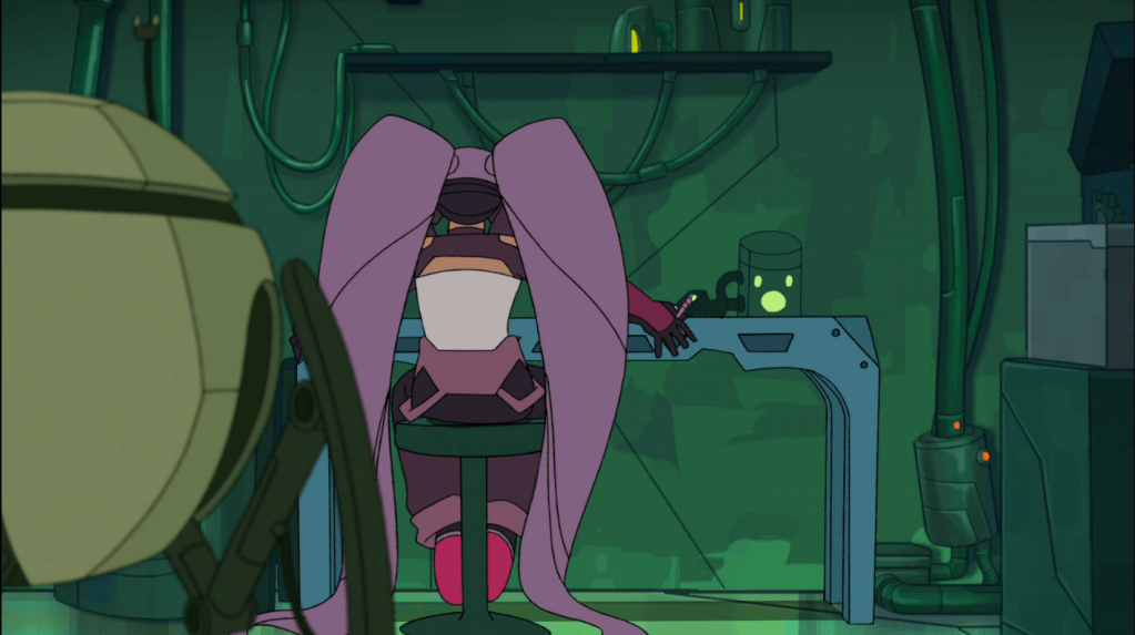 And then Catra orders Scorpia to keep tabs on her and make sure she sticks to her promise, but of course Scorpia still has her mind on her previous task of figuring out the armor problem. She discovers that the problem is the armory is out of the metal they use to make the armor…and loses track of Entrapta immediately.
