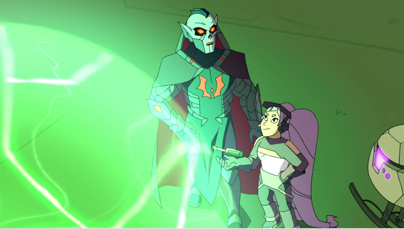 Hordak: You are the one bothering me, Force Captain, with your unwelcome intrusion. I am working! With Entrapta’s assistance.