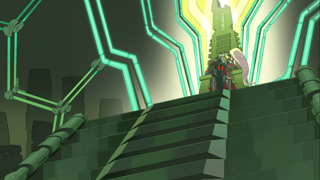 Meanwhile, Catra seems to have interrupted Hordak before he’s quite put himself together (literally?), like interrupting Darth Vader when he doesn’t have his mask on. As such, he’s very irritable.