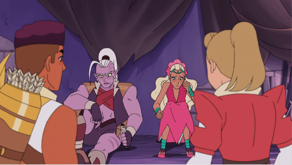 Interestingly, this represents exactly what Glimmer said she was afraid of in Season 1, where she’s on the outside of a friend group and ostensibly “useless”…and it would’ve been REALLY interesting had they actually followed up on that thread!