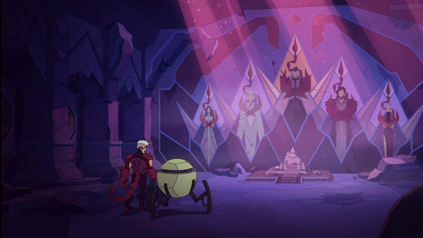 Scorpia: Super Pal Trio. Man, those were good times, huh? Focus! Scorpia, you can’t let Catra down. Think like Entrapta…Think like Entrapta…Bots! Hordak- tiny food. Uh, First Ones tech. Runestones. The Black Garnet chamber!