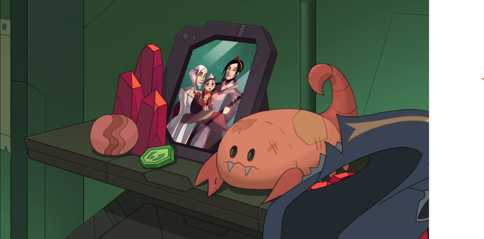 The implication is that one of Scorpia’s mothers was the previous princess, and they’d have to kill her in order for the Horde to use the Black Garnet for their own purposes (and her partner presumably died protecting her, because loyalty). The very fact that Scorpia made up silly names for people who were obviously regarded as important figures in her culture (they wouldn’t be in a royal hall otherwise) reflects how her heritage was torn from her. That’s something she might never get back, even if some other scorpions outside of the royal family might have survived.