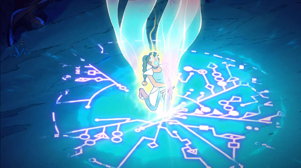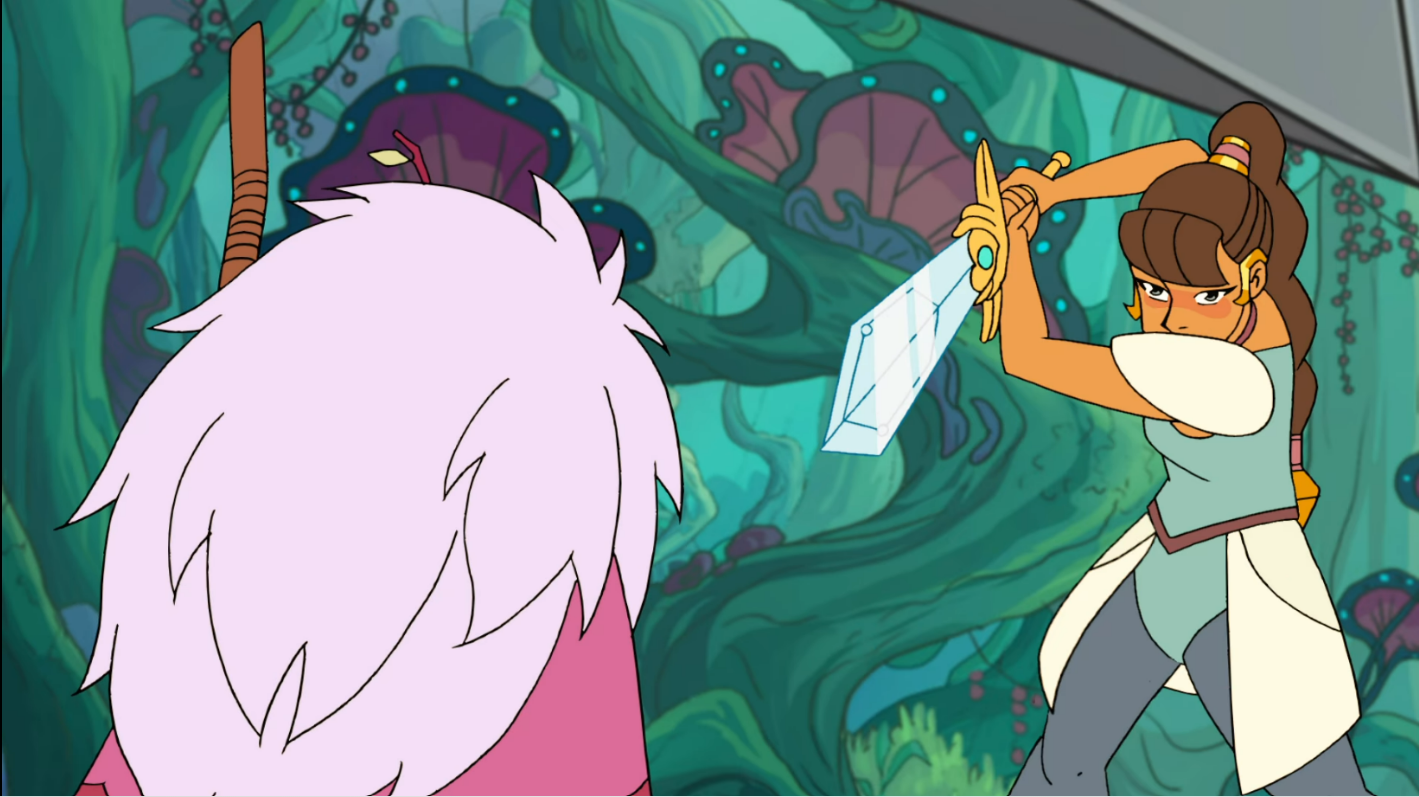 I love how her movements are so distinct from Adora’s She-ra – she’s much more nimble and acrobatic. But in the end, Razz protects her instead.