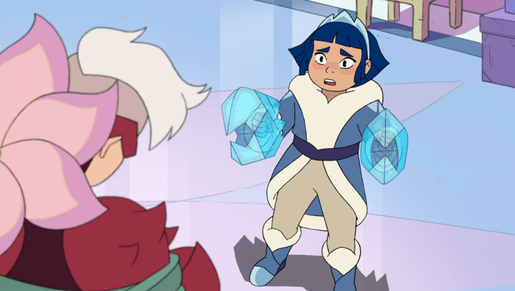 Adora and Bow proceed to make a rescue plan, but Glimmer’s mad that they’re not listening to her, so she takes them aside for a chat.