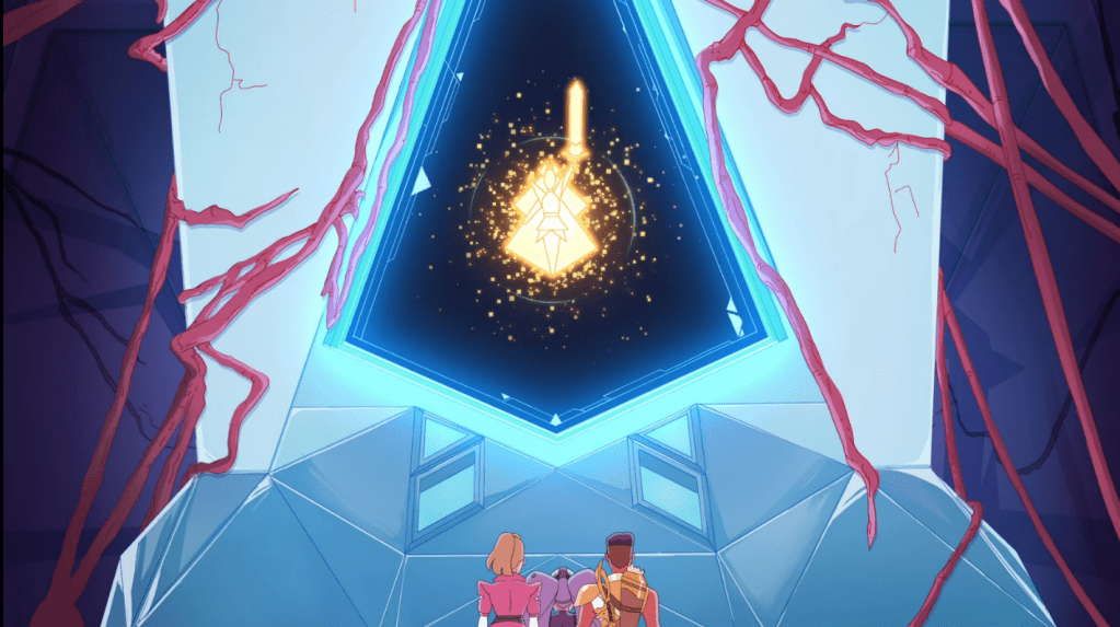 Entrapta: All the princesses are! Hang on, I’ll show you. The Heart draws its power from the magic of the princesses. It needs all their runestones engaged for it to work. And She-ra is the most important piece, the key! She channels the weapon’s power and focuses it.
