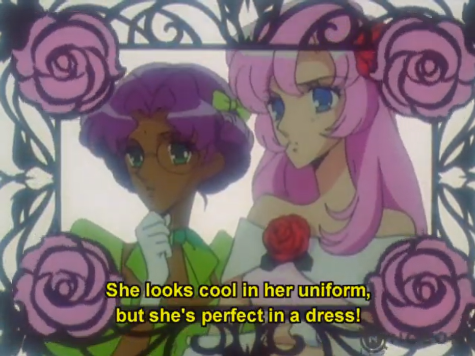 And to top it all off, the girls who were harassing her earlier (and are clearly Nanami’s lackeys at this point) mention that Anthy’s wearing a “special dress”…