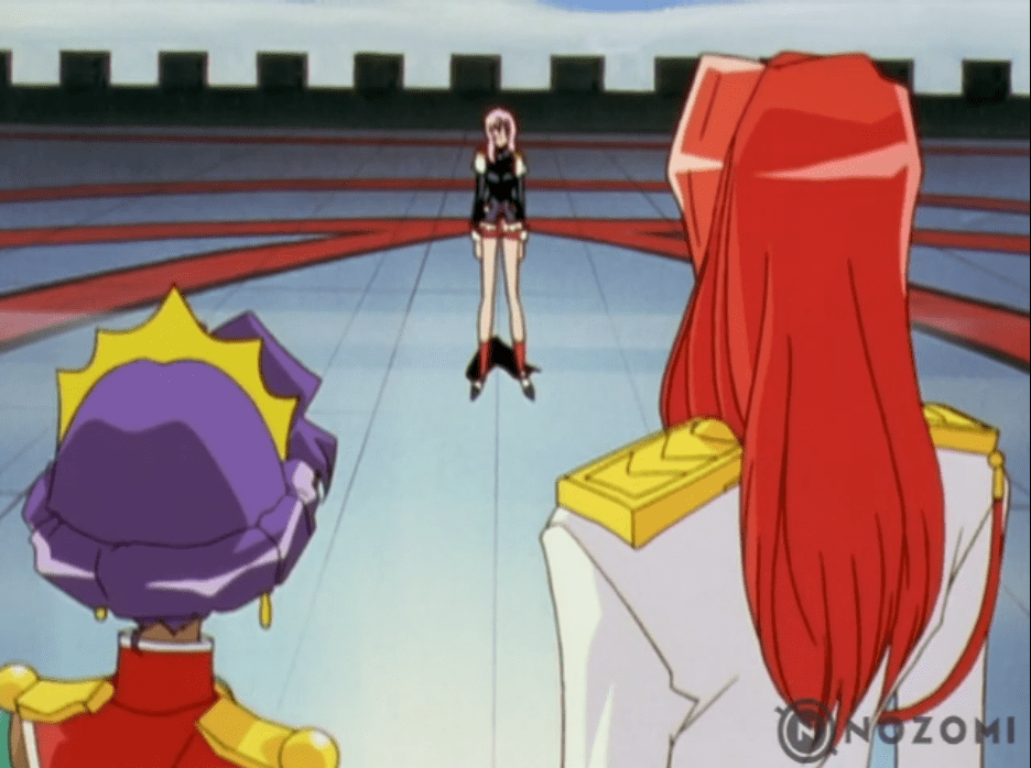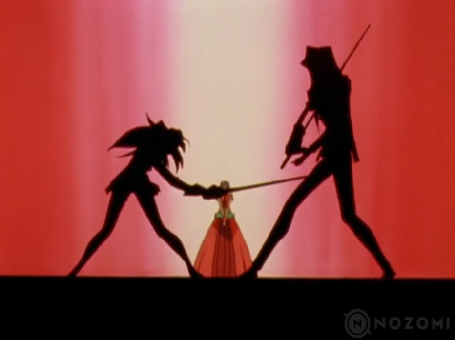 Utena is uncertain of this battle, and doesn’t want to hurt her “prince”, but she prepares her special attack anyway.