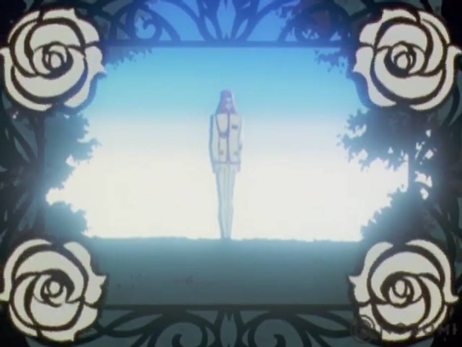 Utena notices him watching (hence the white roses), but doesn’t approach him.