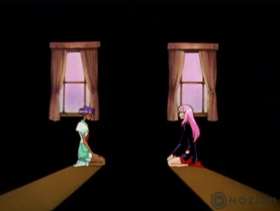 This shot indicates a fundamental divide between the two. Perhaps Anthy does really want to have friends (I can’t imagine being passed around from person to person would be conducive to forming long-term relationships), but at the same time, that is also something Utena has wanted for her since she came into her life, and she never even asked if that was what Anthy wanted for herself.